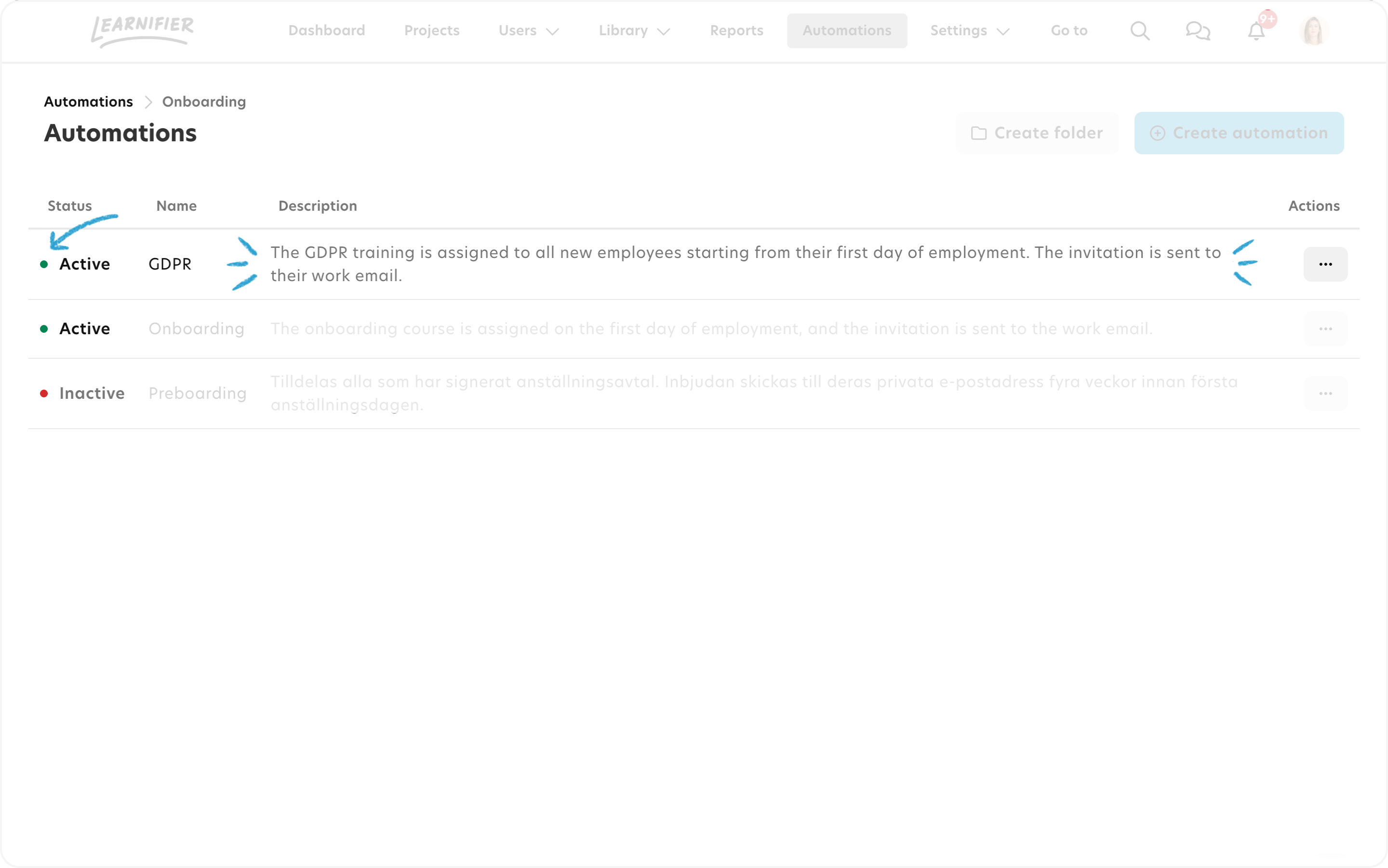 You can now build automation rules based on team structure in Learnifier.Clearer statuses & descriptions